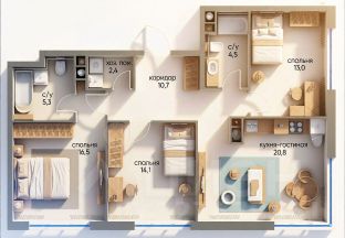 ЖК бизнес класса "Остров" от ведущего девелопера Дострой. Квартал 5, корпус 2 - полностью выполнены ремонты во всех квартирах (самый тихий корпус). Квартира с дизайнерским ремонтом! В собственности! Ключи на руках. Площадь 87 кв.м. (Евро-4: три отдельные спальни и кухня-гостинная). Планировочное решение воплощает в себе комфорт и высокое качество жизни, а элегантный интерьер разработан по индивидуальному дизайн-проекту с учетом всех современных требований. Функциональная планировка включает: кухню-гостиную с зоной столовой (20,8 кв.м.), просторную мастер-спальню (16,5 кв.м.) с ванной комнатой (5,3 кв.м.), вторую спальню (14,1 кв.м.), третью спальню/кабинет (13 кв.м.), хозяйственную/постирочную комнату, удобную прихожую со вторым полноценным санузлом. Уникальная особенность квартиры: высокие потолки и большие окна, благодаря чему пространство наполнено приятным и равномерным естественным светом. Окна выходят во внутренний благоустроенный двор (смотри фото) - тишина и спокойствие гарантированы. В квартире выполнена премиальная дизайнерская отделка. На полу — инженерная доска. Кухня премиального итальянского производителя Snaidero вместе со встроенной техникой Whirlpool (холодильник, посудомоечная машина, духовой шкаф, варочная панель, вытяжка), фурнитура Блум. Кондиционеры Samsung в каждой комнате. Скрытые двери Invisible, теплые полы, установлены системы контроля протечки воды. Для автовладельцев предусмотрен подземный паркинг, в собственности имеется 1 машино-место за дополнительную плату. Машиноместо удобно расположено в непосредственной близости от нашего лифта и выезда из паркинга, на -1 этаже. Дом находится в 1 мин. от метро Терехово, в самом центре района, под круглосуточной охраной и видеонаблюдением, располагает благоустроенной территорией с внутренним двором. Презентабельная входная группа с консьержем. Для жителей доступны спортзал, коворкинг, детские игровые комнаты, и общественные лаундж-зоны, эксплуатируемая крыша. Развитая инфраструктура района включает в себя стандартный набор для успешной и качественной жизни (набережная для прогулок, рестораны, торговые центры, супермаркеты, Ледовая арена Татьяны Навки, хоккейная академия Александра Овечкина, детские сады и поликлиника, инновационная школа 2030 "Школа будущего"). В собственности 1 физического лица. Полная стоимость. Возможна ипотека. Никто не прописан. Все документы готовы к сделке. Свободная продажа!